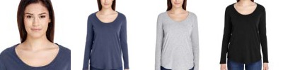 98% cotton, 2% spandex; 50s combed ringspun cotton sheer mini rib knit; Ultra soft; Slim fit; Longer length that is ideal for low-rise bottoms or layering; Sideseamed; Set-in sleeves;
