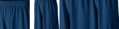 100% polyester wicking mesh; Wicks moisture away from the body; Full-cut; Covered elastic waistband with inside drawcord; Side seam pockets; 9-inch inseam; Double-needle hemmed bottom;
