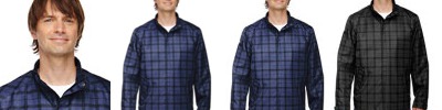 Water resistant finish; 100% polyester microfiber twill printed plaid, 4.4 oz./yd2/150gsm; LINING: 100% polyester taffeta with embossed print; stylized storm flap with metal snaps at top and bottom; inside facing pocket with welt; inside security pocket with invisible zipper and audioport; adjustable cuffs with tabs; dual lower pockets with metal snaps and invisible zippe; adjustable hem with tabs and metal snaps;