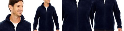 100% polyester anti-pill fleece, 7.7 oz./yd2/260 gsm; fleece chin guard; concealed brushed tricot-lined lower pockets; audio port access through inside pocket;