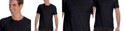 5.5 oz., 100% ringspun cotton jersey; Ribbed crew neck (97% ringspun cotton, 3% spandex); Taped shoulder-to-shoulder; Back locker patch; Double-needle hem bottom; Bleed-resistant ink is recommended for printing; Ribbed sleeve cuffs (97% ringspun cotton, 3% spandex);
