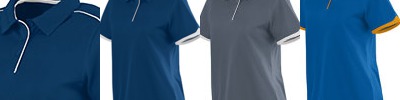 60% cotton 40% polyester performance birdseye, 5.3oz./yd2/180 gsm; Moisture wicking, antimicrobial and UV protection performance; self fabric collar with stand; color-block shoulder panels with contrast piping; side slits;
