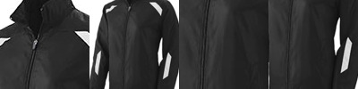 2.8 oz., 100% two-tone yarn-dyed polyester; CONTRAST: 4.9 oz., 95% polyester, 5% spandex double weave; water-resistant finish; inside storm placket with chin guard and metal snap at bottom; center front contrast reverse coil zipper with semi-autolock rubber pull tab; adjustable cuffs with tabs; right-chest pocket and lower pockets; contrast reverse coil pocket zippers ; semi-autolock rubber pull tabs and zipper garages; underarm vents for added breathability; audio port access through inside left pocket; adjustable shockcord at back hem with access through pockets;