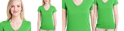 - moisture-wicking; minimal shrinkage; slightly contoured for a flattering fit