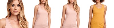 - Seamless rib at neck; Shoulder-to-shoulder tape