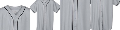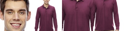 4 oz., 100% polyester tricot; snag protection; moisture-wicking performance; anti-microbial; UV protection performance; heat-sealed label; three-button placket; contrast shoulder inserts; matching flat knit collar;