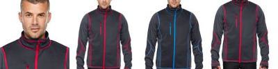100% polyester jersey ; Bonded with 100% polyester jacquard fleece, 8.3 oz./yd2/280 gsm ; inside storm placket with chin guard; centre front contrast reverse coil zipper; stretch storm cuffs with thumb holes; right chest and front lower pockets; contrast coverstitch details; audio port access through inside left pocket;