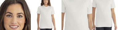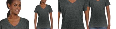 4.5 oz., 100% polyester; Moisture management jersey; Ribbed collar; Taped shoulder to shoulder with EasyTear™ label; Double-needle hemmed sleeves and bottom;