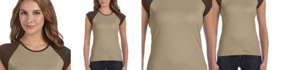 B2020 Ladies' Stretch Rib Cap-Sleeve Contrast Raglan T-Shirt