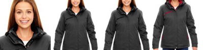 100% polyester two-tone interlock, 4.3 oz./yd2/145 gsm; Quick Dry, moisture wicking and UV protection performance; self fabric binding at shoulders and side seams; metal rivet details above side slits; heat seal label ; self fabric collar with collar stand; concealed zippered placket with metal snap at top ; slit located at under-sleeve;