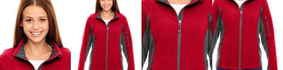 100% polyester sweater knit fleece, 9.4 oz./yd2/320 gsm; inside storm placket with fleece chin guard; center front reverse coil zipper with embossed metal pull; brushed tricot-lined chest pocket ; contrast coverstitch detailing;