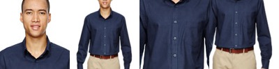 Wrinkle resistant finish; 60% cotton 40% polyester yarn-dyed checkered dobby twill; 3.5 oz./yd2/120 gsm; yarn-dyed checkered dobby twill; hidden button-down collará; double needle flat felled side and underarm seams; adjustable cuffs; left chest pocket; back yoke with box pleat;