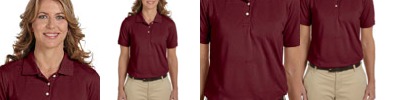 100% polyester mlange jersey, 4.1 oz./yd2/140 gsm; Moisture wicking and antimicrobial performance; self-fabric collar with collar stand; self-fabric piping at front and back shoulders; heat seal label;