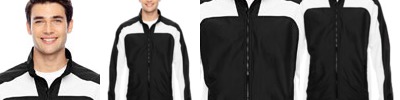 2.8 oz., abrasion-resistant 100% nylon taslan shell with polyurethane coating for enhanced wind- and water-resistance; 3.2 oz., 100% polyester white tricot big hole mesh lining in body; 100% polyester white taffeta lining in sleeves; contrast blocking on side panels, front yoke, back yoke and sleeves; EZEM zipper provides easy decoration access; dyed-to-match old school molded plastic pocket zippers; stretch binding at sleeve hem; molded plastic zippers at front welt pockets;