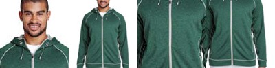 Shell: 7.08 oz/yd2 / 240 gsm, 100% polyester mélange fleece with moisture wicking performance; Lining: 100% polyester tricot in hood; Center front reverse coil zipper with semi-autolock slider and rubber pull; Attached adjustable hood; Lower pockets with reverse coil zippers; Shockcord at hood; Multi-color decorative tape detailing; Contrast coverstitch details throughout;