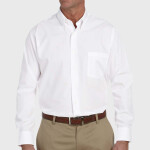 button-down collar; durable flat felled side and underarm seams; left chest pocket; back yoke with box pleatá;