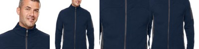 100% polyester anti-pill microfleece, 6.3 oz./yd2/215 gsm; center front contrast reverse coil zippers; laser welded sleeve pocket for personal compact audio device; contrast zippered front pockets with zipper garages; adjustable shockcord at hem; contrast side panels and inner collará;