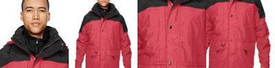inside pocket with audio port access; reverse coil zippered pockets; stretch binding finish on armholes; adjustable shockcord at hemá;