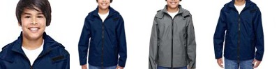 Shell: 2.8 oz/yd2 / 95 gsm 100% nylon abrasion-resistant taslan shell; Polyurethane coating for enhanced wind- and water-resistance; Lining: 100% polyester anti-pill microfleece in body; 100% polyester taffeta in sleeves; Black contrast tape details throughout; Attached fleece-lined hood; EZEM zipper in left side seam & at lower back for easy decoration access; Center front & lower pockets with exposed vislon zipper; Fleece-lined front pockets;