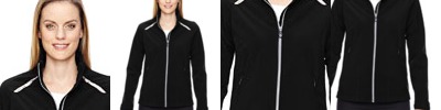 4% spandex bonded with 100% polyester fleece, 8.8 oz./yd2/300 gsm; 96% polyester 4% spandex ; Bonded with 100% polyester fleece, 8.8 oz./yd2/300 gsm; inside storm placket with chin guard; front zipper with contrast thread and semi-autolock rubber pull ; laser stitch details on front and back body; laser cut/welded decoration on front shoulder and back yoke; audio port access through inside left pocket ; adjustable shaped cuffs with tabs; lower pockets with invisible zippers;