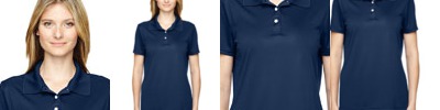 5.1 oz., lightweight 100% poly piqu with hydrophilic finish; Rib-knit collar; Open hem sleeves; Contrast adidas logo on right sleeve; Three-button placket; Sideseamed with drop tail ; Soft hand;